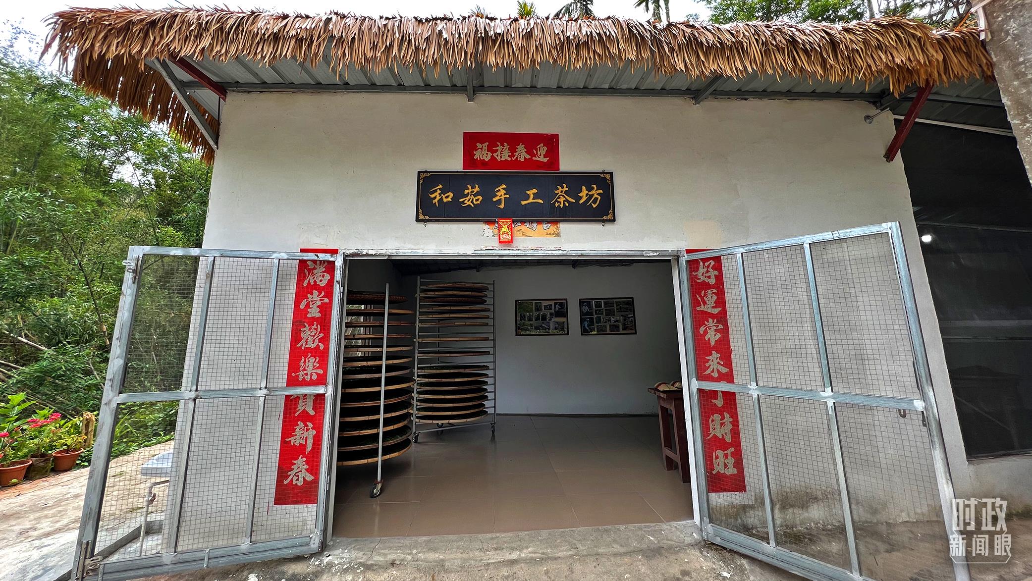△王柏和、王菊茹夫婦開的手工制茶作坊以及他們制作水滿大葉茶時的工作照。(總臺央視記者邢彬、央廣記者潘毅拍攝)