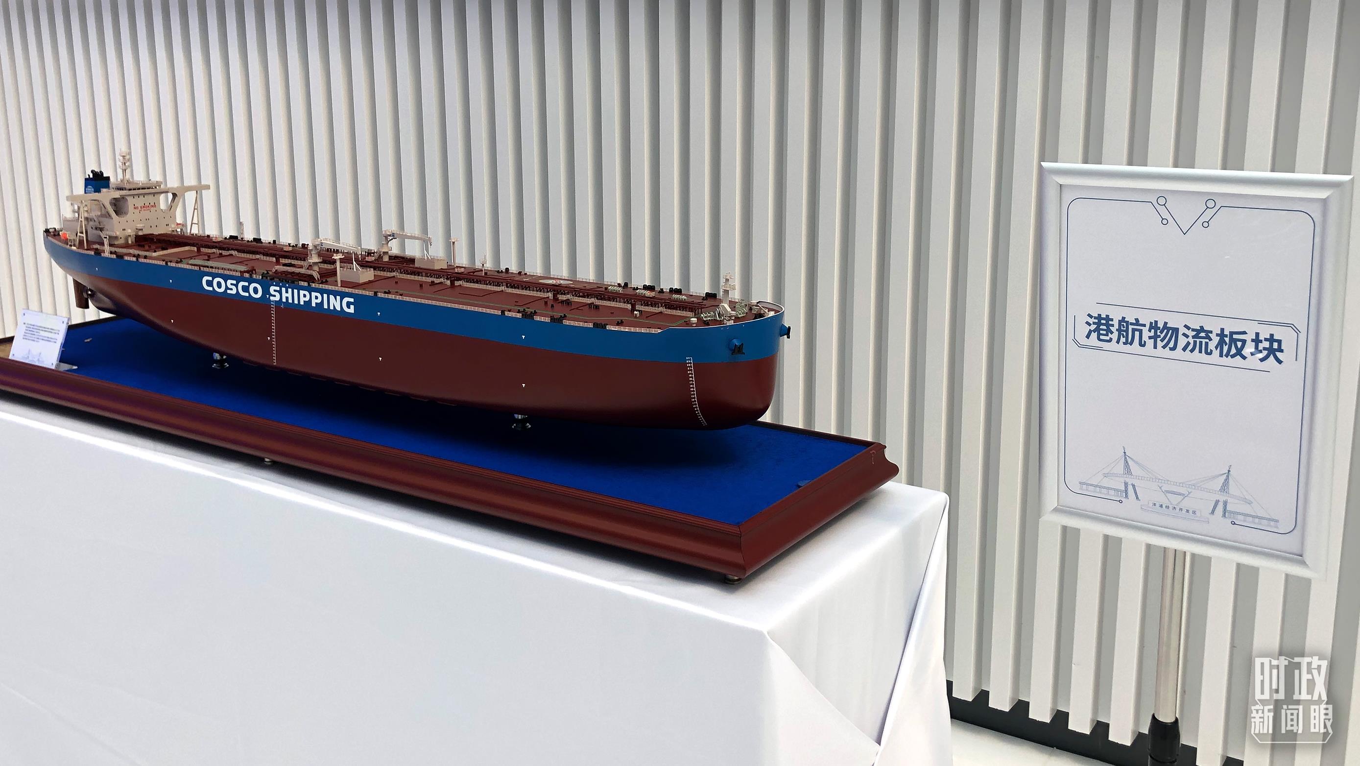 △洋浦展示館內(nèi)的“港航物流板塊”展區(qū)。(總臺央視記者許永松拍攝)