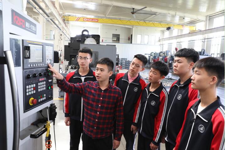 2021年5月8日,河北省河間市職業(yè)教育中心教師在河間市一家企業(yè)為學(xué)生講解機床實操。新華社記者 駱學(xué)峰 攝