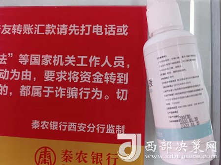 決策熱線(xiàn)|武先生:4月26日上午前往秦農(nóng)銀行長(zhǎng)安區(qū)支行辦理業(yè)務(wù),營(yíng)業(yè)大廳共有9個(gè)業(yè)務(wù)窗口,只有3個(gè)正常辦理個(gè)人業(yè)務(wù),致使多數(shù)人在大廳內(nèi)排隊(duì)等候,隊(duì)伍已排到了營(yíng)業(yè)廳門(mén)口。辦理銀行卡用了近2個(gè)小時(shí),銀行業(yè)務(wù)效率低。隨后發(fā)現(xiàn)窗口擺放的防疫消毒液已過(guò)效期(生產(chǎn)日期:2020.1.30,有效期至:2022.1.29),防疫物資疏于管理。