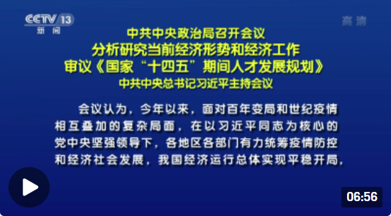 中共中央政治局4月29日召開(kāi)會(huì)議,分析研究當(dāng)前經(jīng)濟(jì)形勢(shì)和經(jīng)濟(jì)工作,審議《國(guó)家“十四五”期間人才發(fā)展規(guī)劃》。中共中央總書(shū)記習(xí)近平主持會(huì)議。