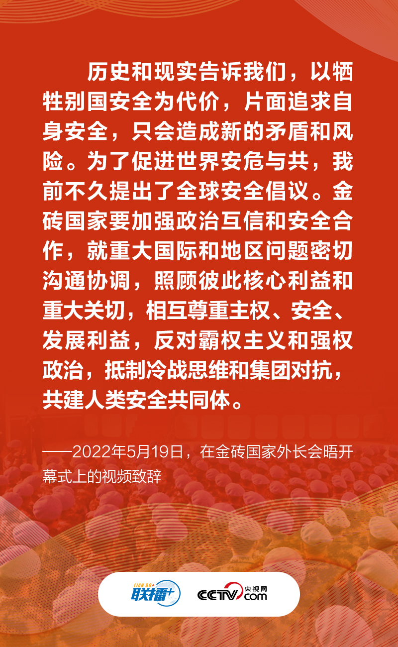 “歷史和現(xiàn)實(shí)告訴我們,以犧牲別國(guó)安全為代價(jià),片面追求自身安全,只會(huì)造成新的矛盾和風(fēng)險(xiǎn)。為了促進(jìn)世界安危與共,我前不久提出了全球安全倡議。”近日,國(guó)家主席習(xí)近平在金磚國(guó)家外長(zhǎng)會(huì)晤開(kāi)幕式上發(fā)表視頻致辭,再次提及全球安全倡議。
