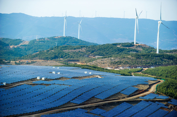 這是貴州省威寧縣平箐光伏電站和大海子風(fēng)電場(2018年3月13日攝)。新華社記者 楊文斌 攝