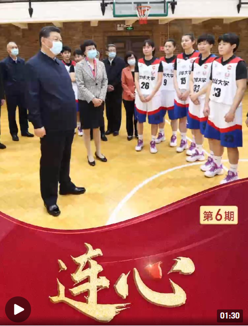 2021年4月19日,習(xí)近平總書記來到清華大學(xué)考察。學(xué)校西體育館內(nèi),正在訓(xùn)練的校籃球運(yùn)動員們見到了他們的“學(xué)長”習(xí)近平。