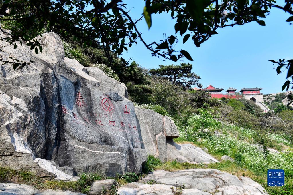 泰山“世界文化與自然遺產(chǎn)”石刻(5月24日攝)。新華社記者 郭緒雷 攝