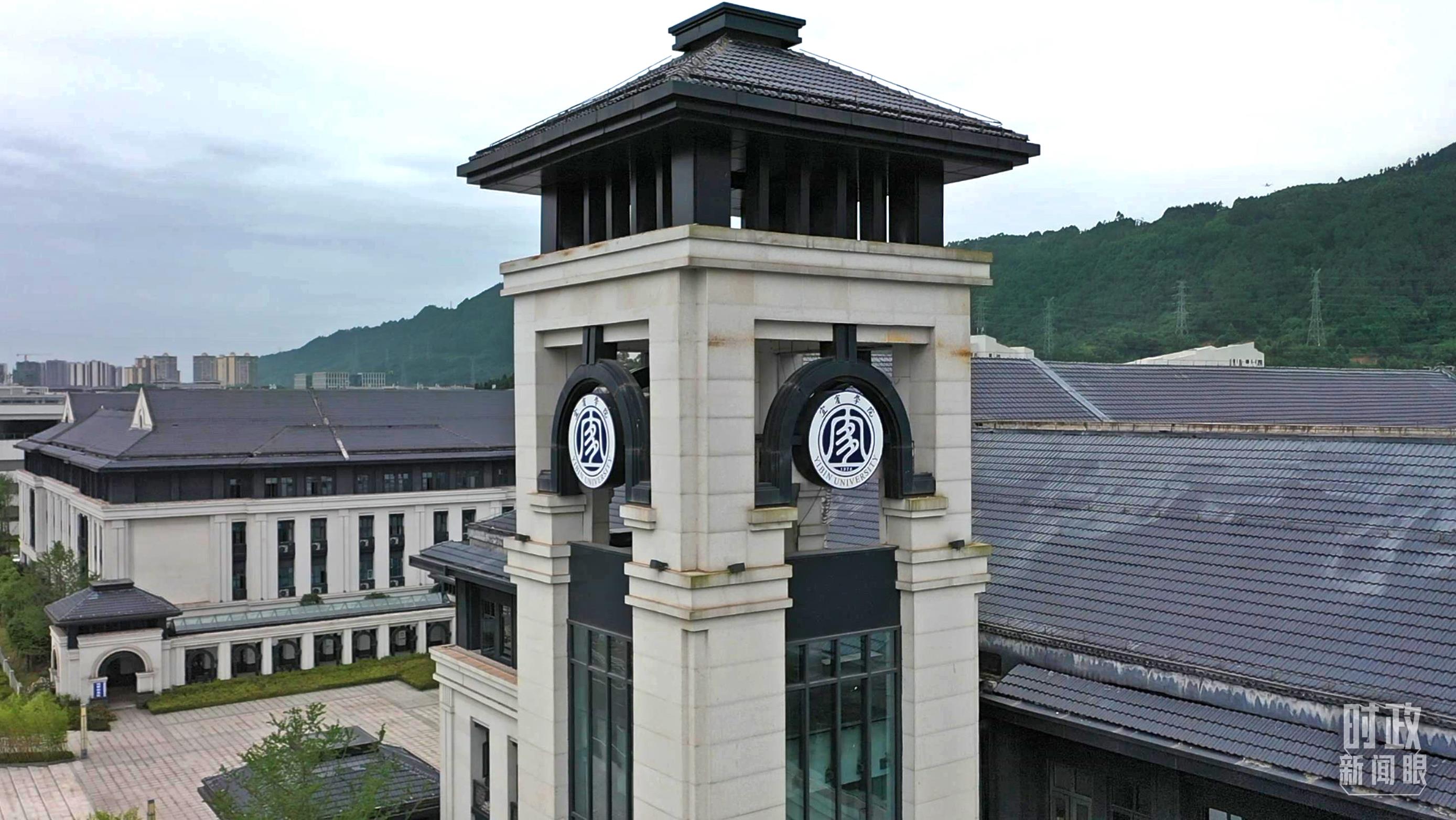 △宜賓學(xué)院?;眨w取鐘的外形,內(nèi)部以篆體“宜”字為主體。(總臺記者胡吉川拍攝)