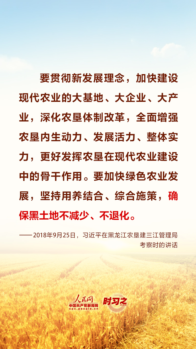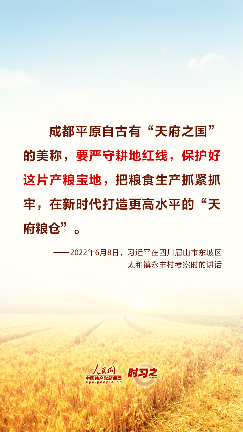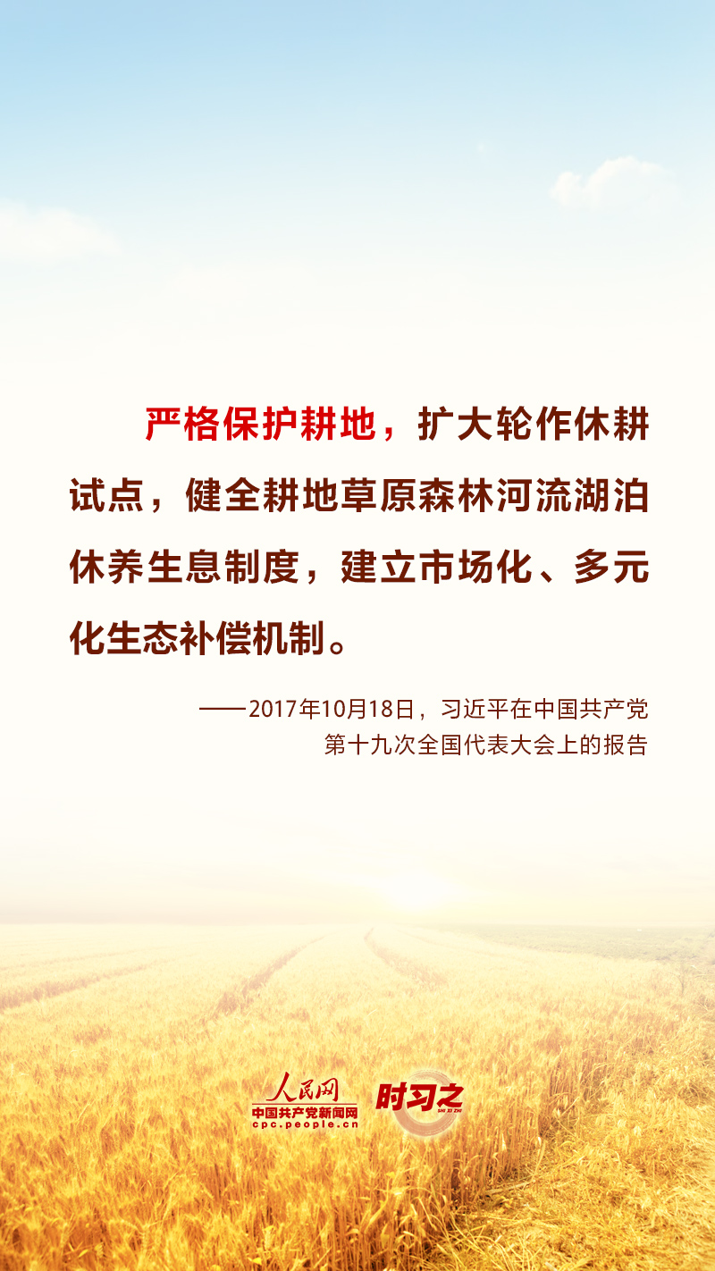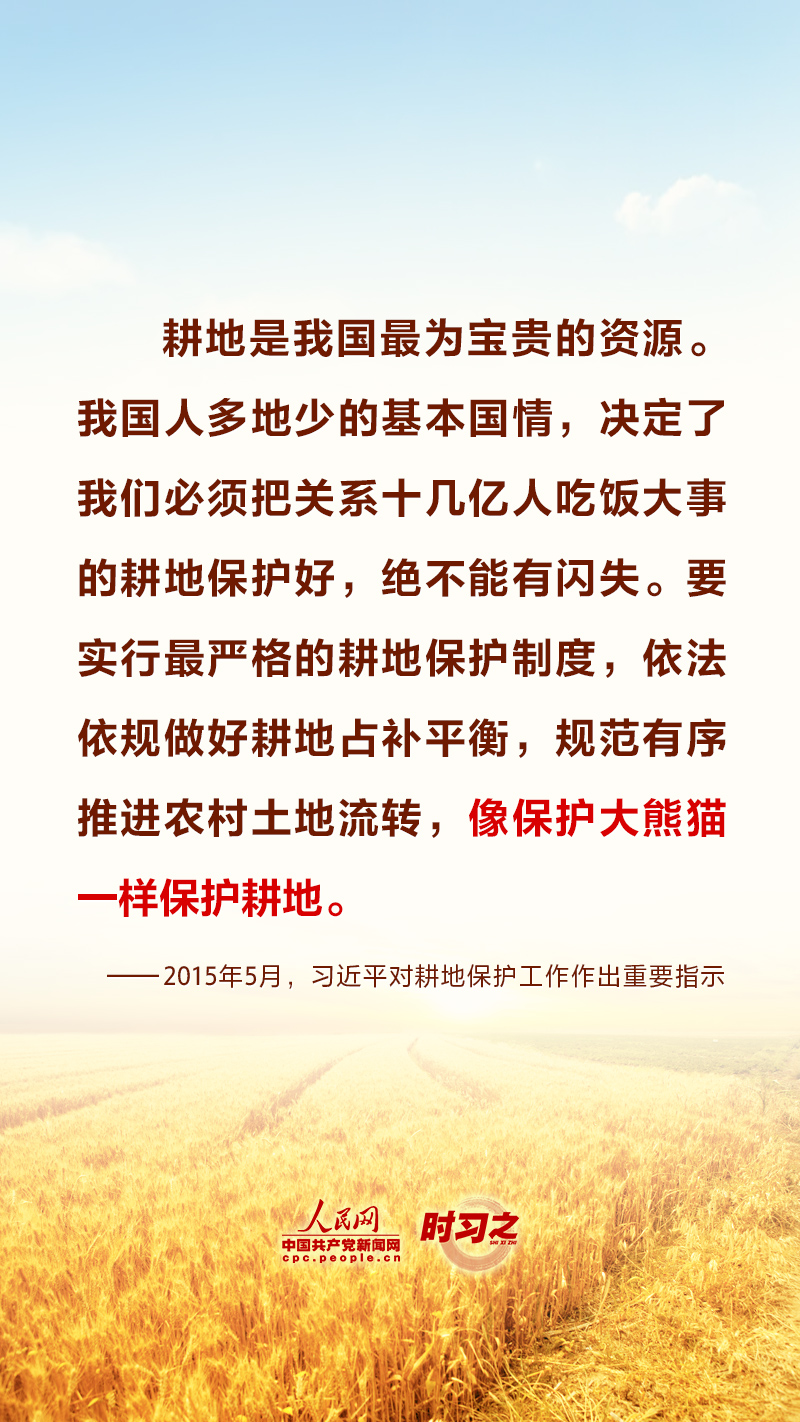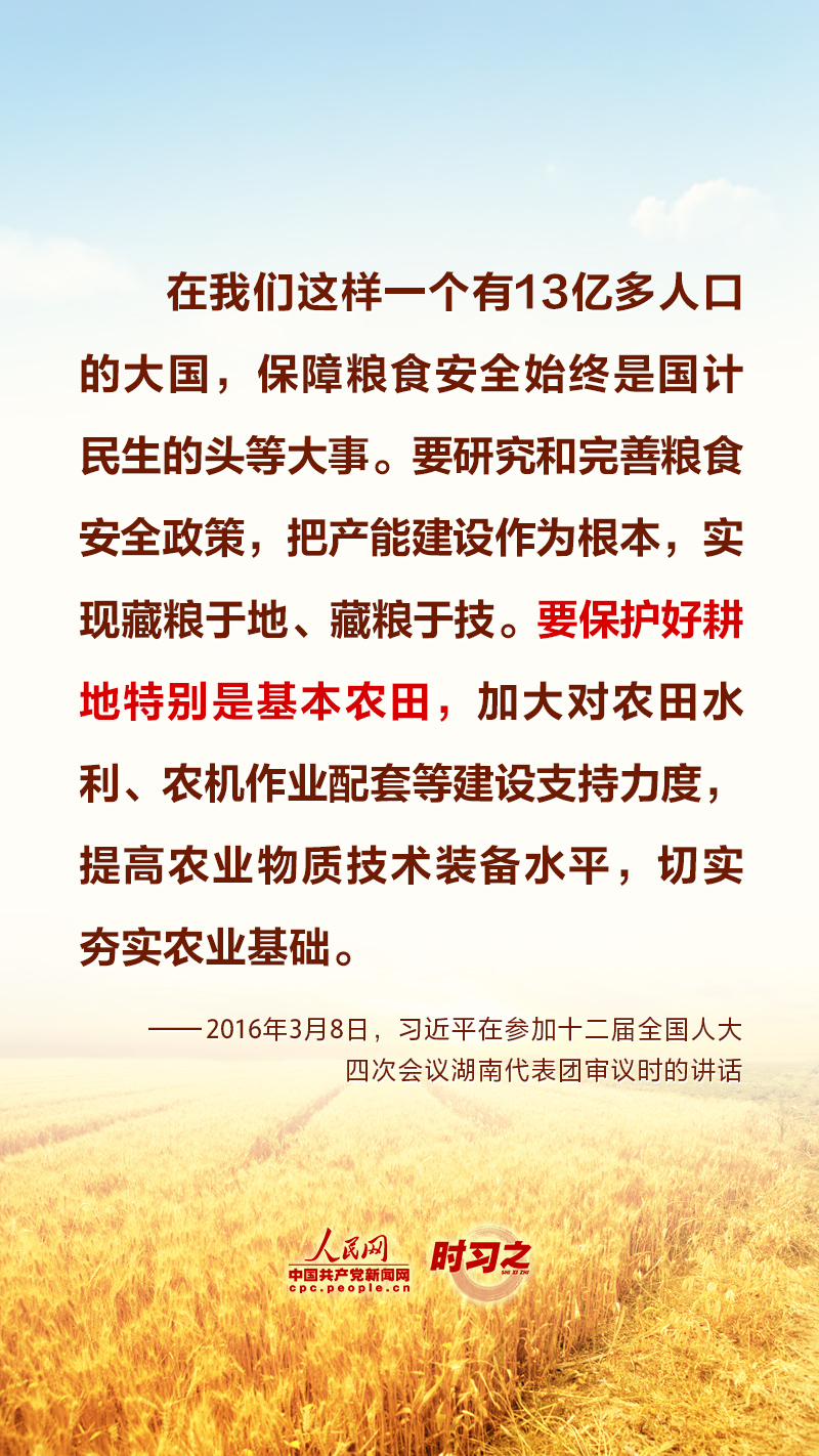 “民非谷不食,谷非地不生。”糧食安全在習(xí)近平總書(shū)記心中有著特殊的分量,他多次深入田間地頭察墑情、看苗情、問(wèn)收成,明確指出“耕地是糧食生產(chǎn)的命根子”。耕地是我國(guó)最為寶貴的資源,堅(jiān)持藏糧于地、端穩(wěn)中國(guó)飯碗,“希望的田野”終將麥浪滾滾、稻花飄香。