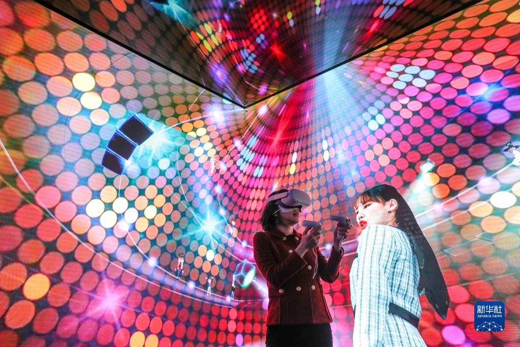 2022年3月1日,一名女子在西班牙巴塞羅那2022世界移動(dòng)通信大會上通過虛擬現(xiàn)實(shí)技術(shù)在“元宇宙”中體驗(yàn)音樂會。新華社記者 鄭煥松 攝