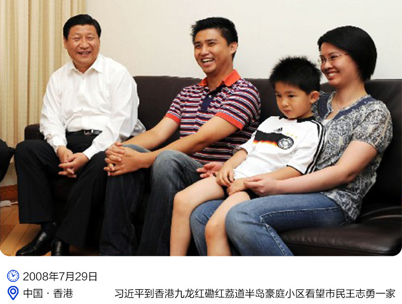 2008年7月,時(shí)任國家副主席的習(xí)近平考察香港,專門抽出時(shí)間深入普通社區(qū)。“我們都很關(guān)心香港居民的生活,所以到你家里來看看。”在市民余杜勝家,習(xí)近平細(xì)心地詢問了工資福利、小區(qū)治安等問題。當(dāng)聽到香港市民對(duì)物價(jià)上漲感受強(qiáng)烈時(shí),習(xí)近平說,價(jià)格的上漲有多種原因,解決的辦法,一是政府要控制物價(jià),二來是要發(fā)展經(jīng)濟(jì),增加收入,對(duì)于低收入的群體要多些支持和幫助。