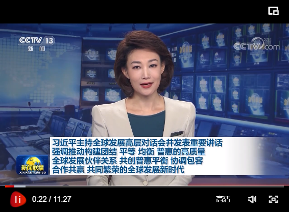 習(xí)近平發(fā)表題為《構(gòu)建高質(zhì)量伙伴關(guān)系 共創(chuàng)全球發(fā)展新時(shí)代》的重要講話(huà)。