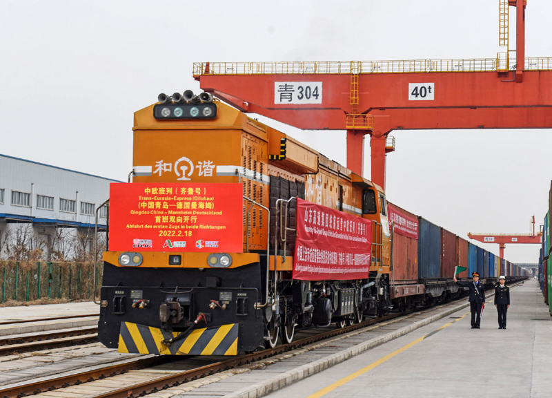 2022年2月18日,中歐班列(齊魯號(hào))中國(guó)青島—德國(guó)曼海姆雙向?qū)﹂_首班列車從上合示范區(qū)青島多式聯(lián)運(yùn)中心出發(fā)。