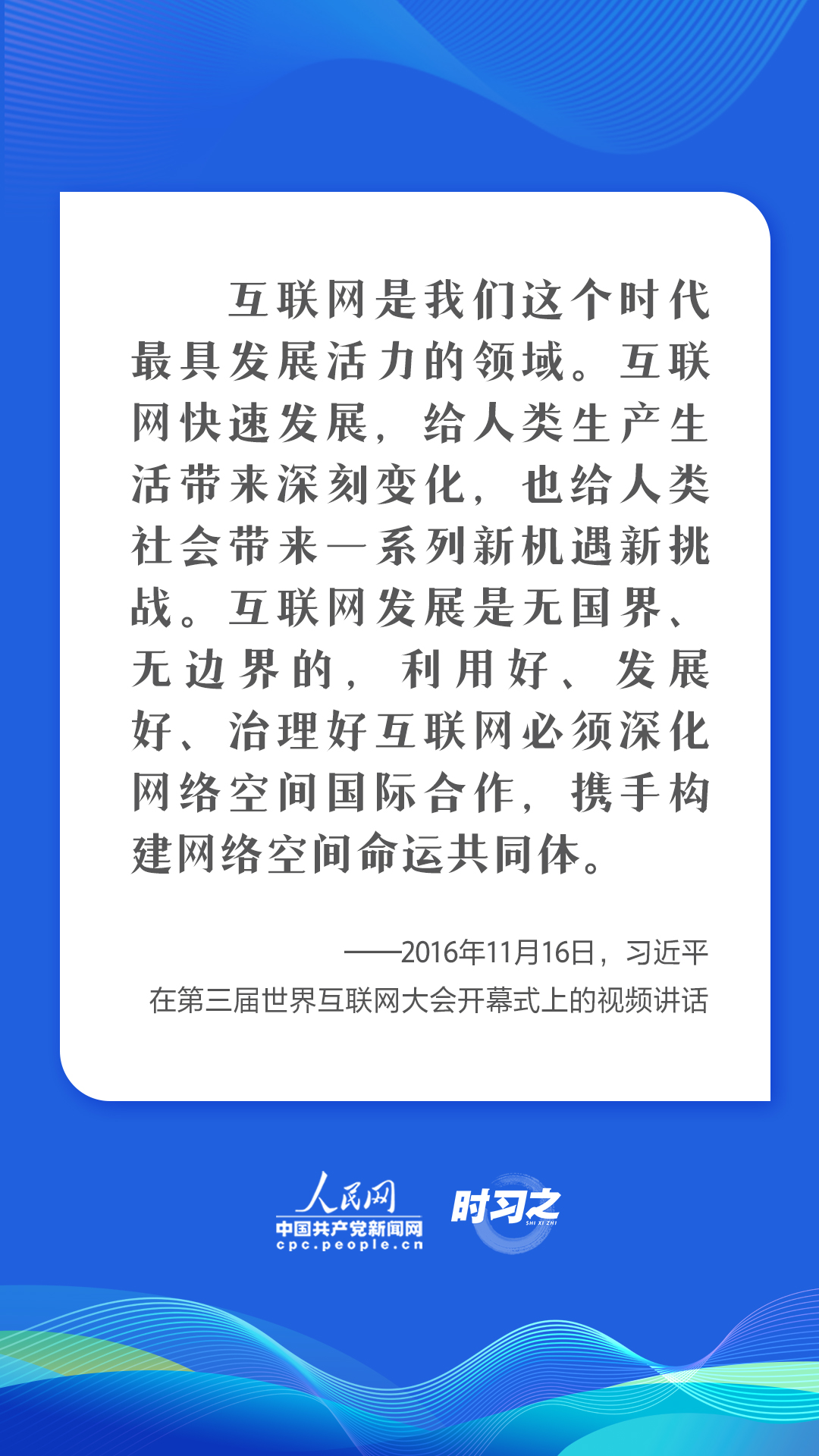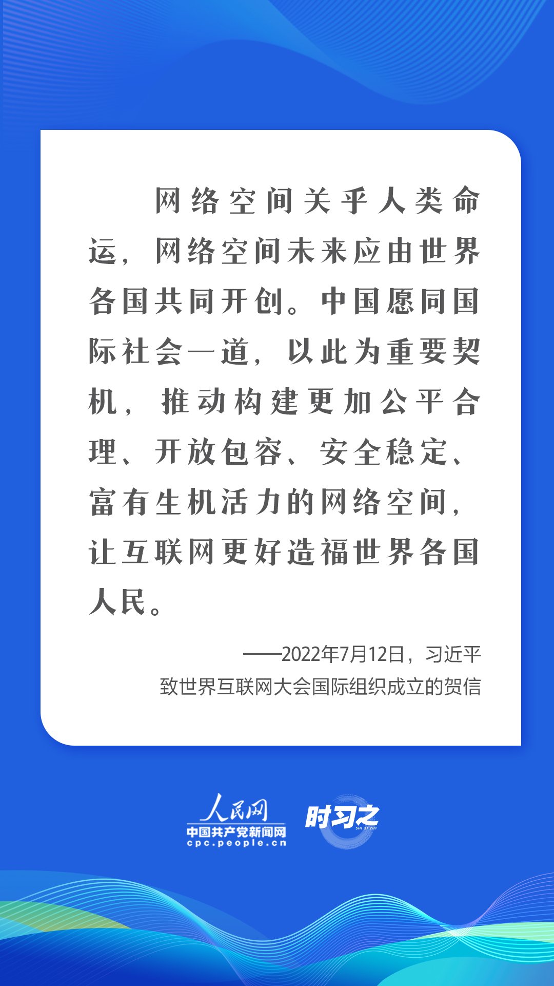 7月12日,國家主席習近平向世界互聯(lián)網(wǎng)大會國際組織成立致賀信。他強調(diào),網(wǎng)絡空間關(guān)乎人類命運,網(wǎng)絡空間未來應由世界各國共同開創(chuàng)。這些年,習近平數(shù)次就互聯(lián)網(wǎng)發(fā)展大勢、網(wǎng)絡空間治理作出重要論述,并多次在不同場合發(fā)出“中國倡議”,為世界互聯(lián)網(wǎng)發(fā)展凝聚合力。