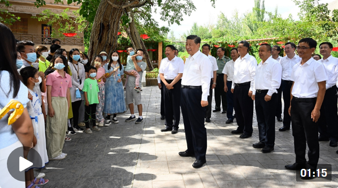 14日下午,習(xí)近平總書記來到新疆吐魯番市,先后考察了葡萄溝、高昌區(qū)亞爾鎮(zhèn)新城片區(qū)新城西門村、交河故城,了解當(dāng)?shù)匕l(fā)展特色產(chǎn)業(yè)、推進(jìn)鄉(xiāng)村振興、文化遺產(chǎn)保護(hù)利用等情況。