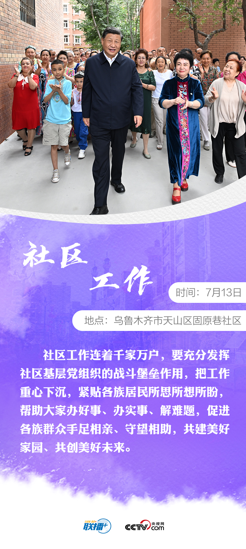 7月12日至15日,習(xí)近平總書記時(shí)隔八年再次考察新疆。他先后來到烏魯木齊、石河子、吐魯番等地,深入學(xué)校、國際陸港區(qū)、社區(qū)、博物館、農(nóng)村和新疆生產(chǎn)建設(shè)兵團(tuán)等進(jìn)行調(diào)研。