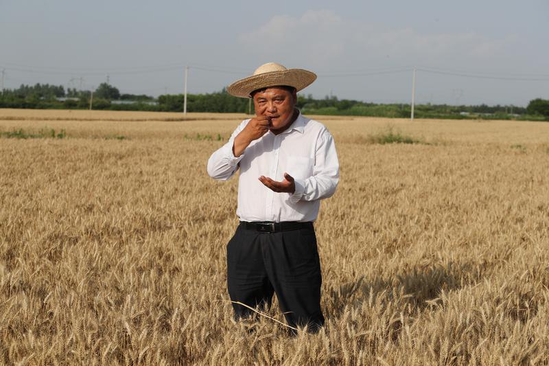 6月8日,薛拓通過咀嚼麥粒判斷麥子成熟程度。 肖曉良攝