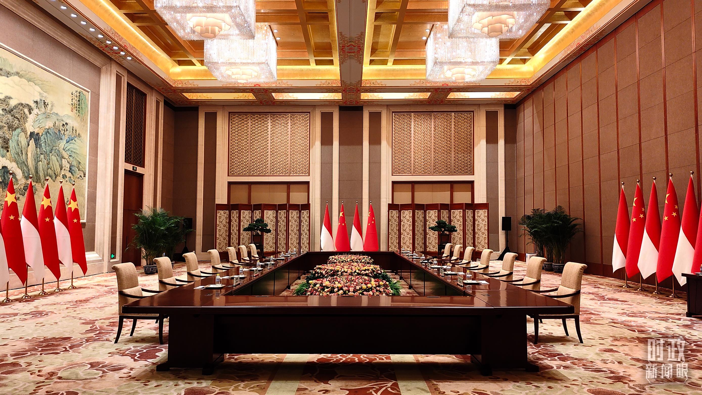 △會(huì)談開始前的現(xiàn)場。(總臺(tái)央視記者楊立峰拍攝)