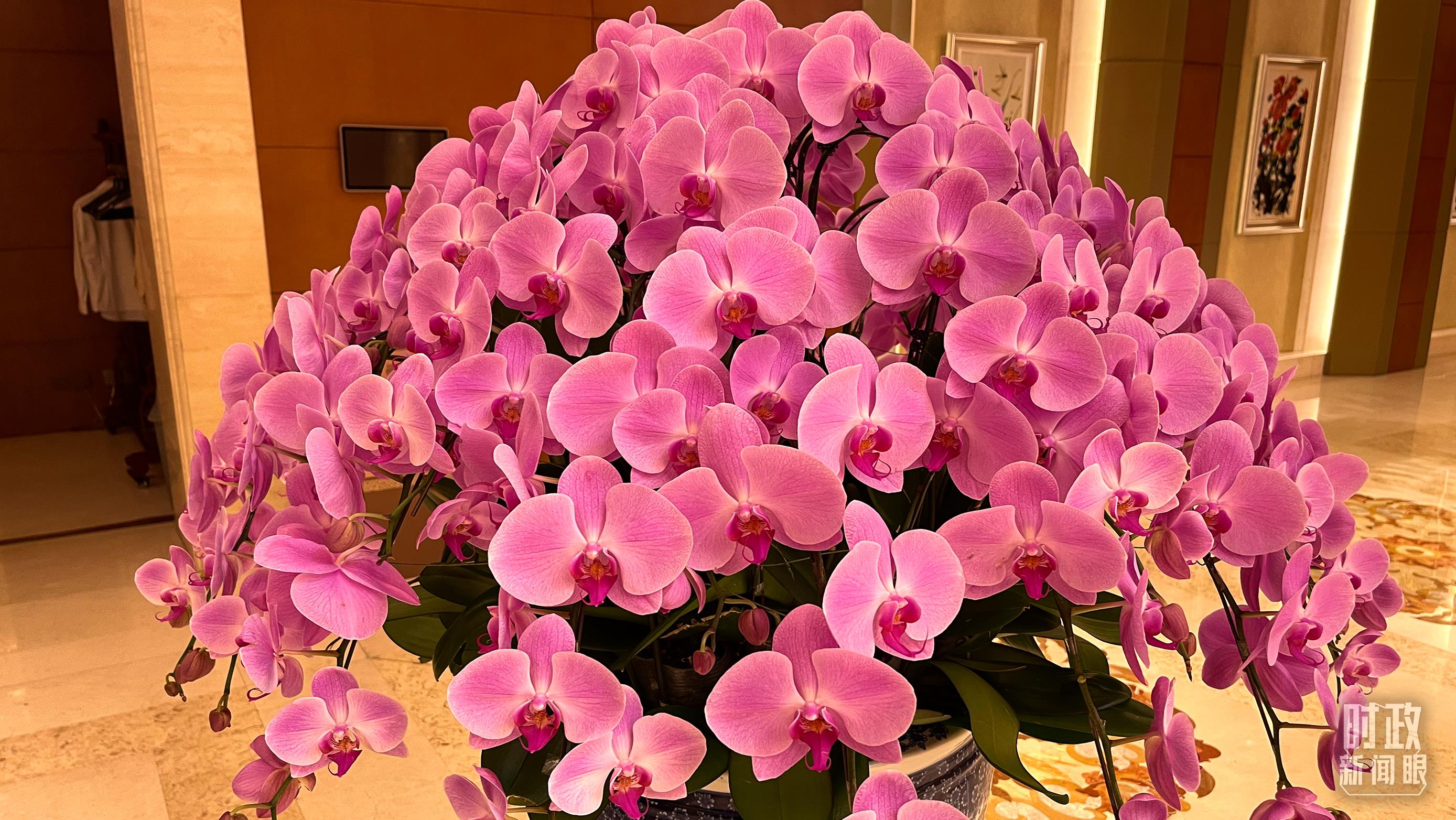 △釣魚臺(tái)國賓館芳華苑內(nèi)擺放的蝴蝶蘭,印尼是蝴蝶蘭的重要產(chǎn)地之一。(總臺(tái)央視記者鄂介甫拍攝)