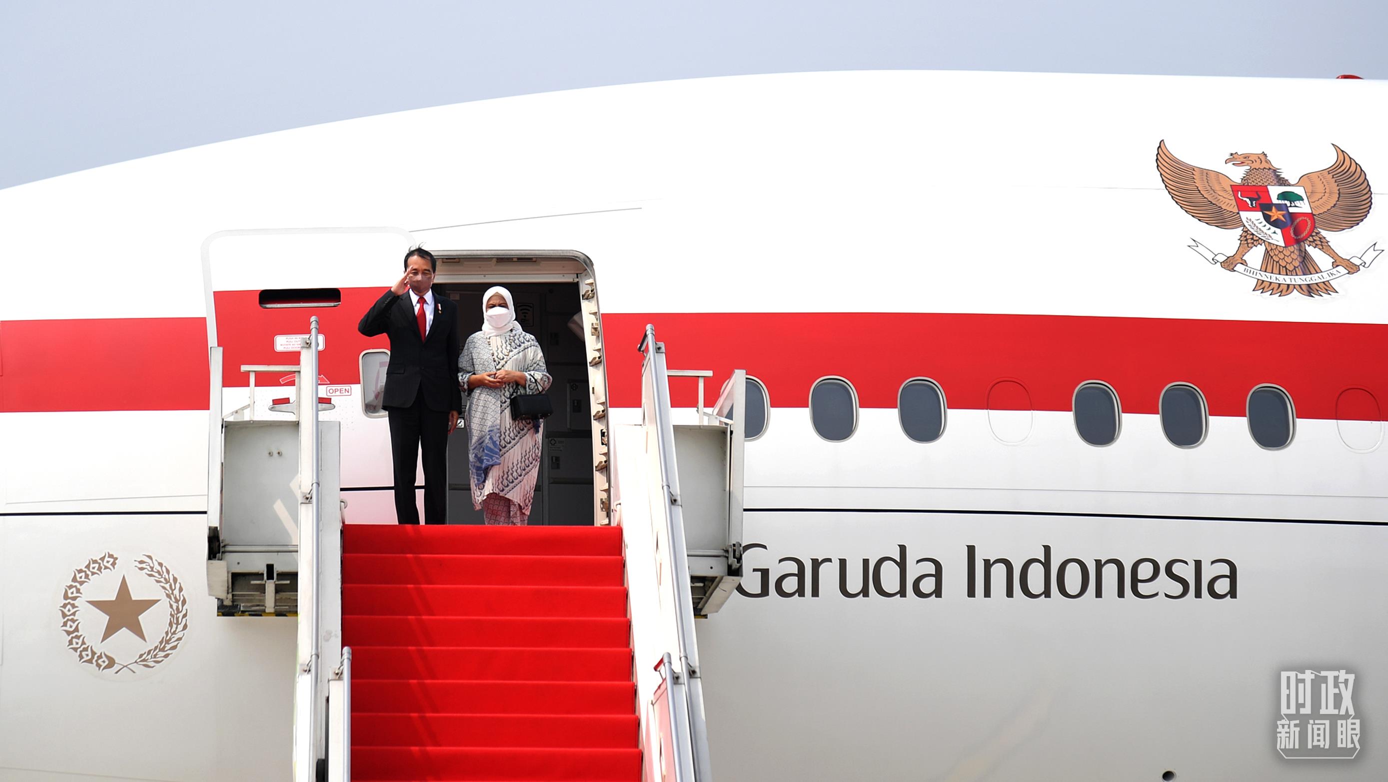 △當(dāng)?shù)貢r(shí)間2022年7月25日下午,印尼總統(tǒng)佐科偕夫人乘坐專機(jī)啟程前往北京。(圖/視覺中國)