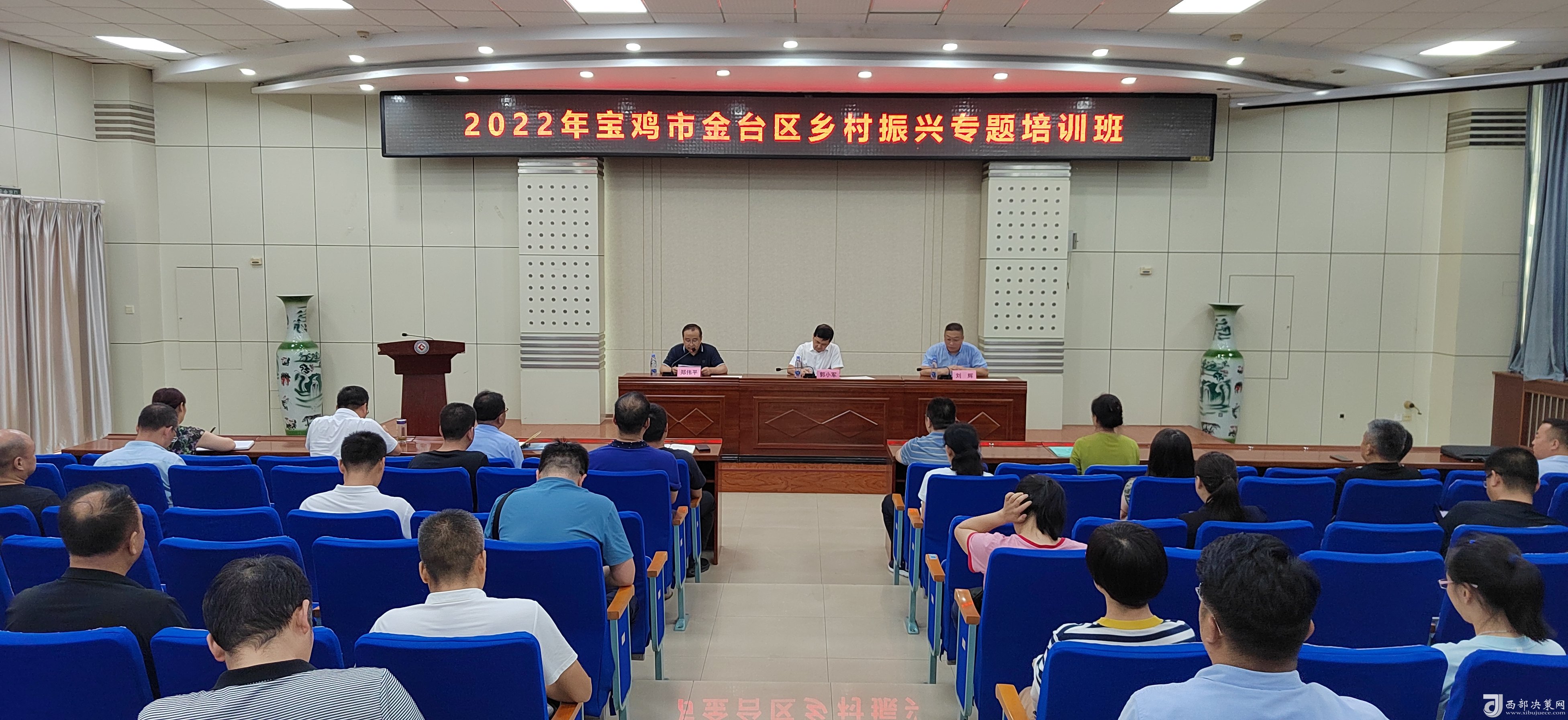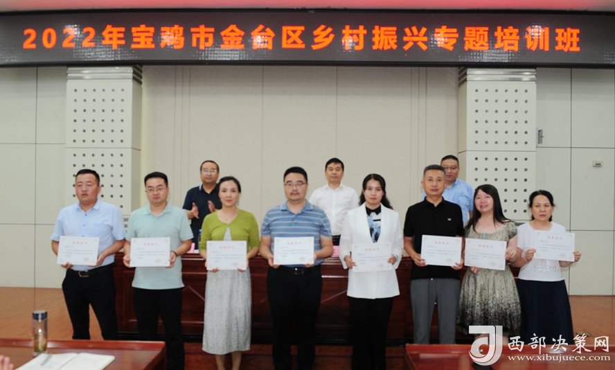 西部決策網(wǎng)訊 8月6日下午,為期三天的“2022年寶雞市金臺(tái)區(qū)鄉(xiāng)村振興專(zhuān)題培訓(xùn)班”結(jié)束了!60余學(xué)員順利的拿到了結(jié)業(yè)證。寶雞文理學(xué)院經(jīng)濟(jì)管理學(xué)院院長(zhǎng)、陜西鄉(xiāng)村振興研究中心主任劉輝;金臺(tái)區(qū)政府副區(qū)長(zhǎng)郭小軍出席了結(jié)業(yè)儀式。參加結(jié)業(yè)儀式的還有金臺(tái)區(qū)鄉(xiāng)村振興局主要負(fù)責(zé)人、分管領(lǐng)導(dǎo),各鎮(zhèn)涉農(nóng)街道黨(工)委書(shū)記和鄉(xiāng)村振興工作分管領(lǐng)導(dǎo),區(qū)委實(shí)施鄉(xiāng)村振興戰(zhàn)略領(lǐng)導(dǎo)小組和區(qū)委抓黨建促鄉(xiāng)村振興領(lǐng)導(dǎo)小組各成員單位分管領(lǐng)導(dǎo)。結(jié)業(yè)儀式由金臺(tái)區(qū)鄉(xiāng)村振興局局長(zhǎng)鄭偉平主持。