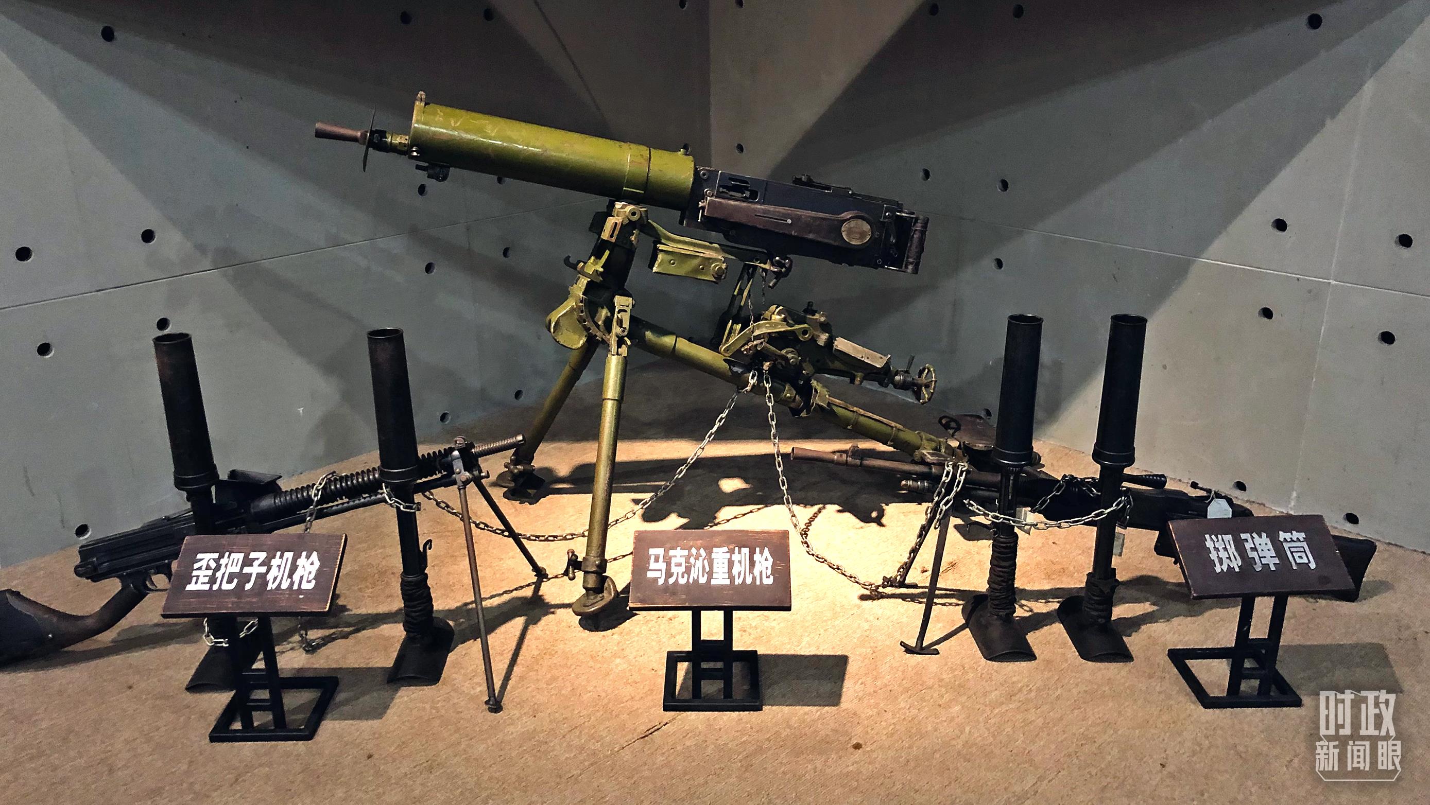 △遼沈戰(zhàn)役紀念館展出,歪把子機槍、馬克沁重機槍和擲彈筒。(總臺央視記者許永松拍攝)