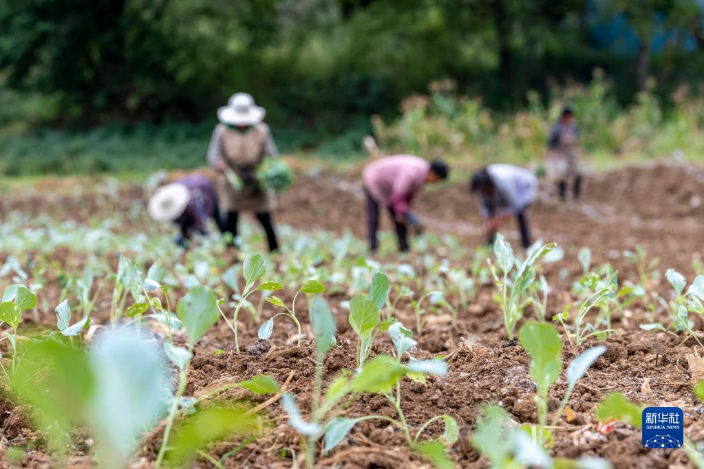 9月1日,村民在貴州省畢節(jié)市百里杜鵑管理區(qū)鵬程街道大水社區(qū)田間勞作。新華社發(fā)(李華 攝)