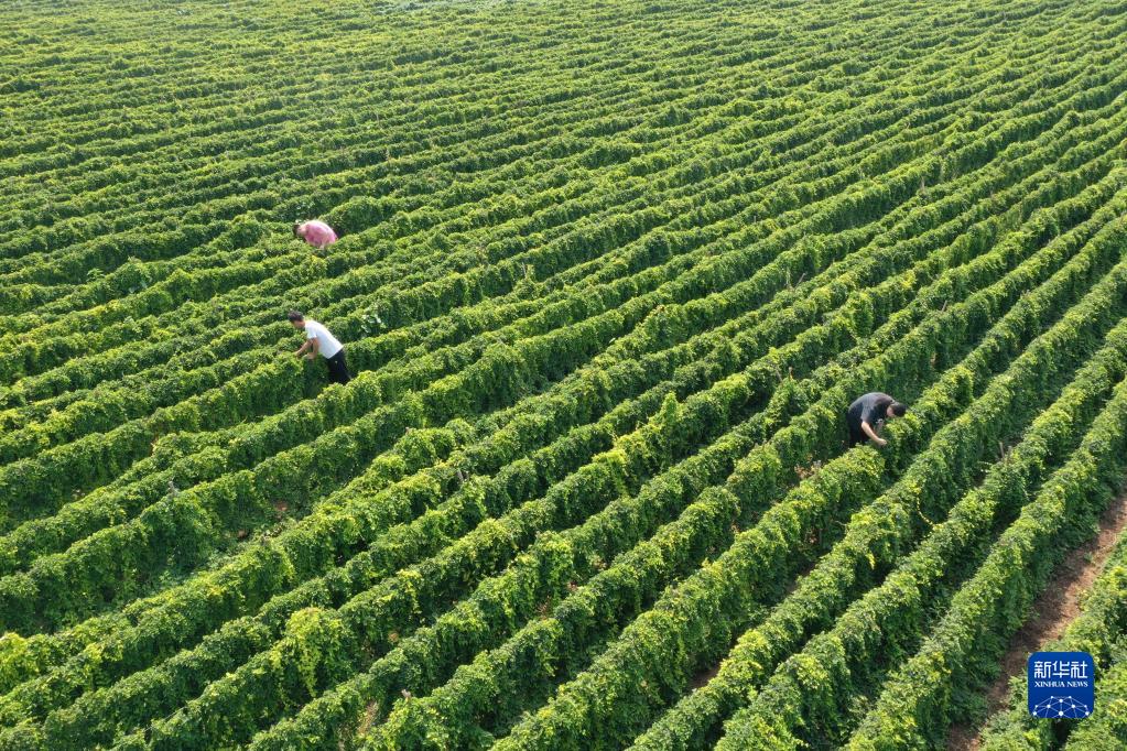 9月1日,河南省焦作市溫縣黃莊鎮(zhèn)米莊村村民在鐵棍山藥種植基地管理鐵棍山藥。新華社發(fā)(徐宏星 攝)
