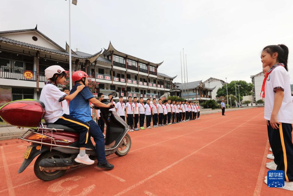 9月1日,湖南省張家界市武陵源區(qū)索溪峪中心學(xué)校的學(xué)生在上“交通安全第一課”。新華社發(fā)(吳勇兵 攝)