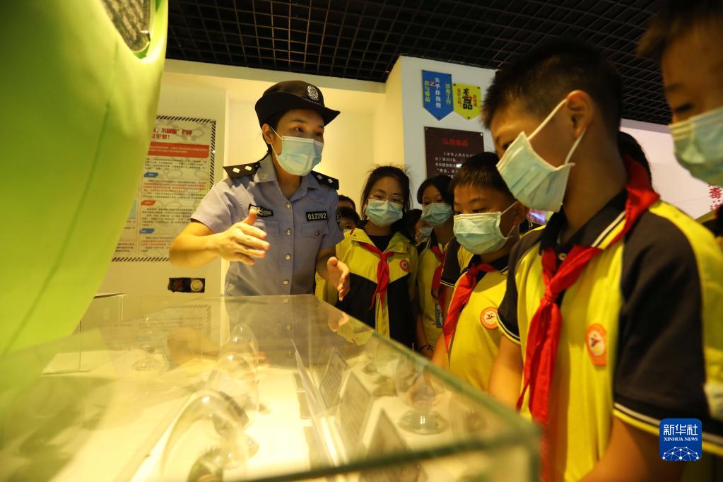 9月1日,在貴州省赤水市天臺學(xué)校,民警給學(xué)生講解新型毒品相關(guān)知識。新華社發(fā)(王長育 攝)