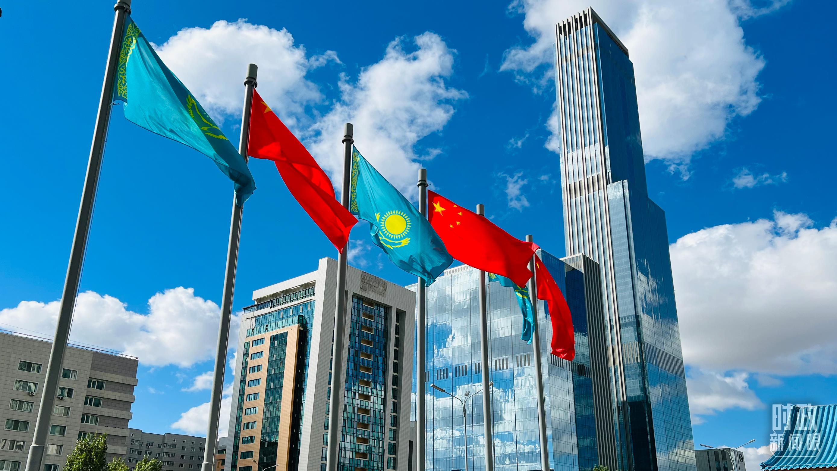 △哈薩克斯坦首都升起中哈兩國國旗。(總臺央視記者魏子鈞拍攝)