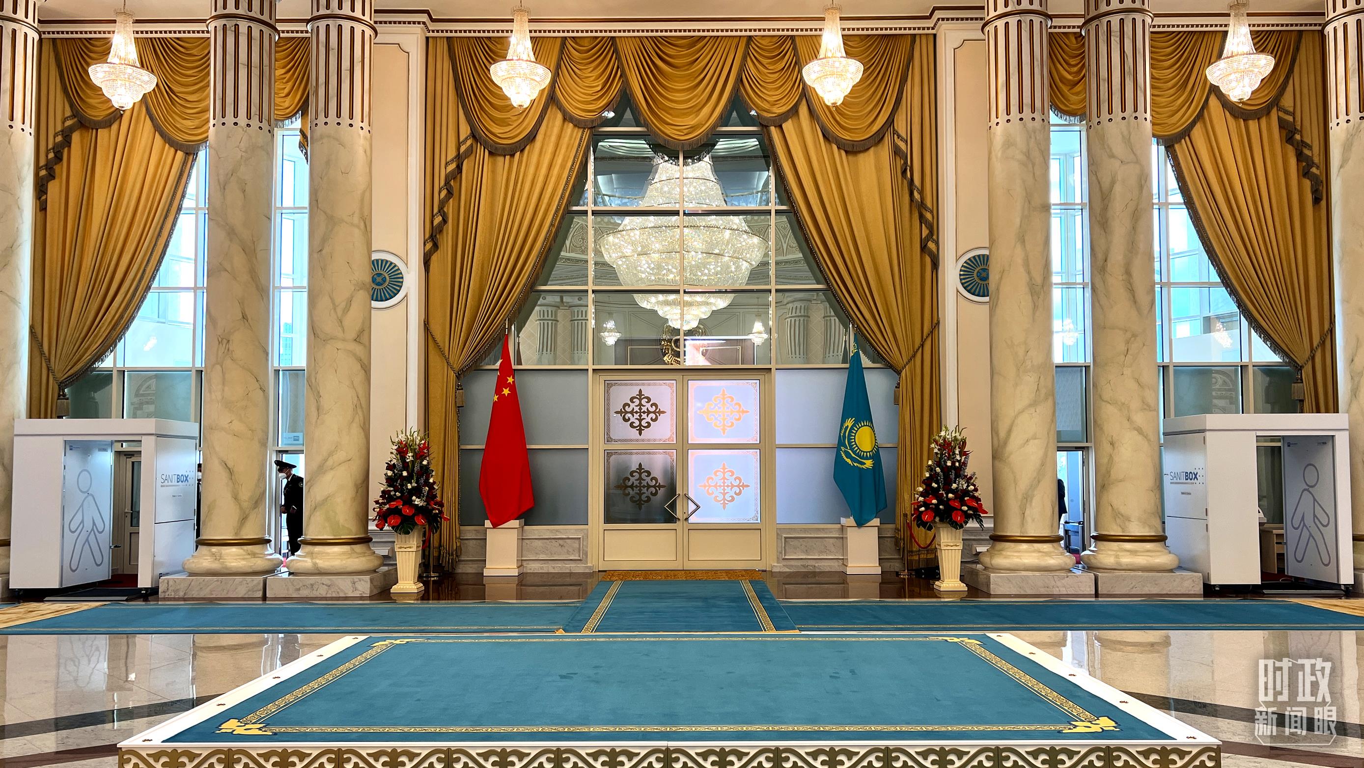 △精心布置的歡迎儀式大廳。(總臺央視記者郁振一拍攝)