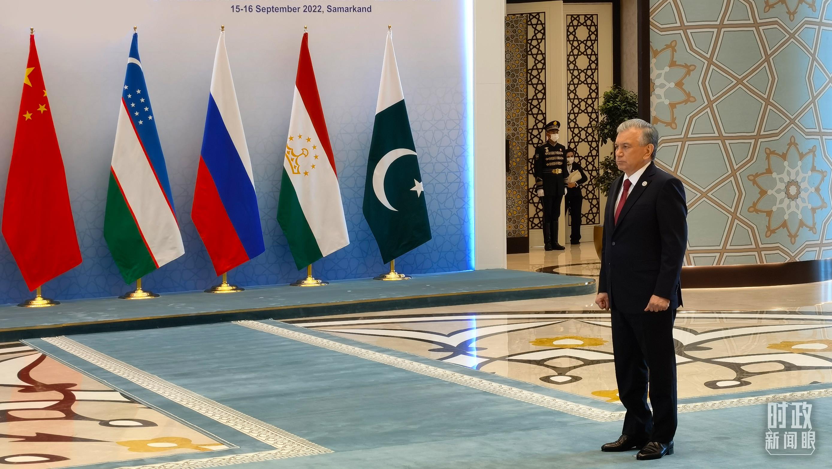 當(dāng)天上午,烏茲別克斯坦總統(tǒng)米爾濟(jì)約耶夫作為主席國元首提前來到現(xiàn)場(chǎng),準(zhǔn)備迎接各國領(lǐng)導(dǎo)人的到來。
