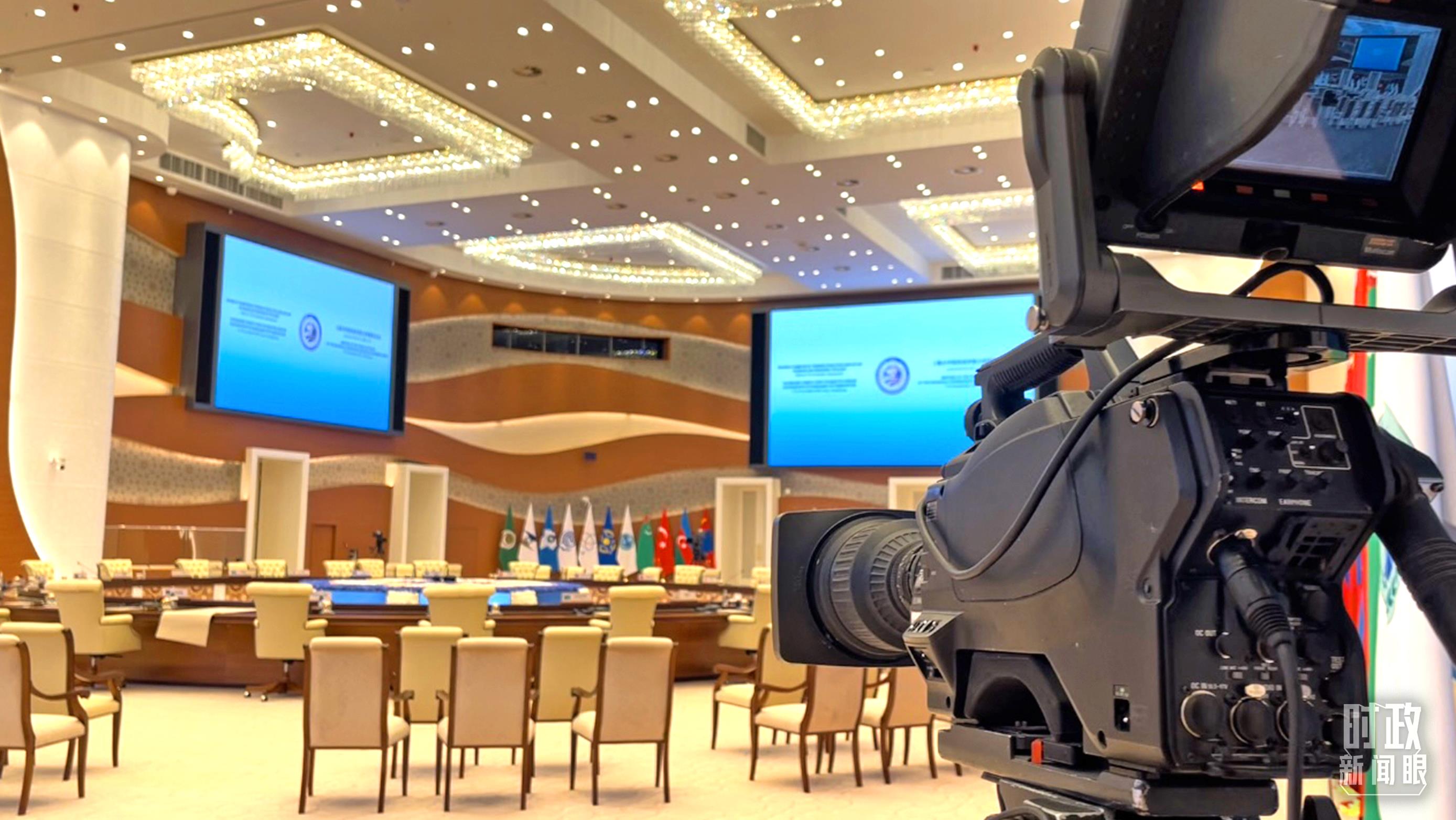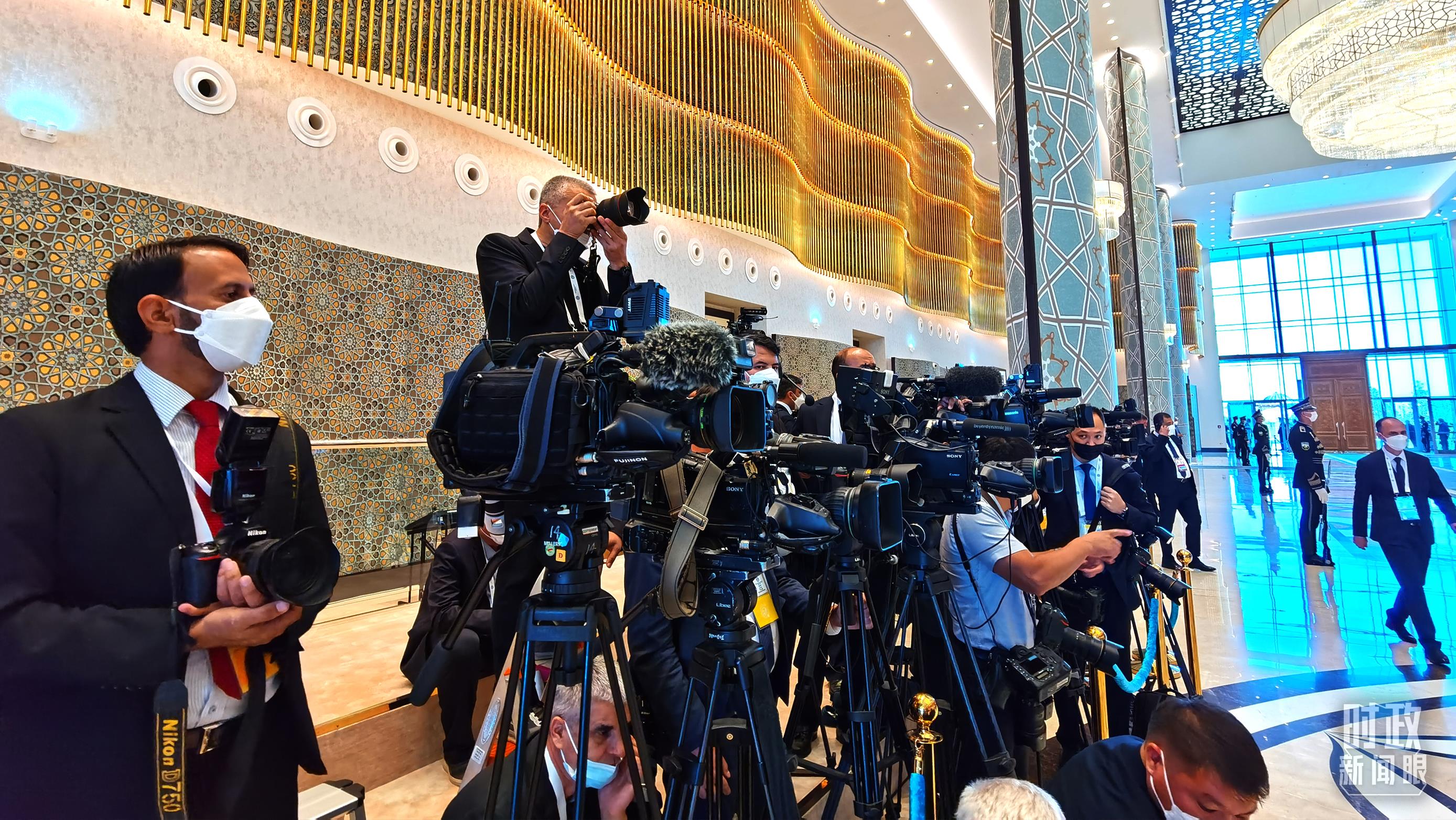△米爾濟(jì)約耶夫總統(tǒng)正在等待上合組織其他成員國領(lǐng)導(dǎo)人到來。(總臺(tái)央視記者馬超拍攝)