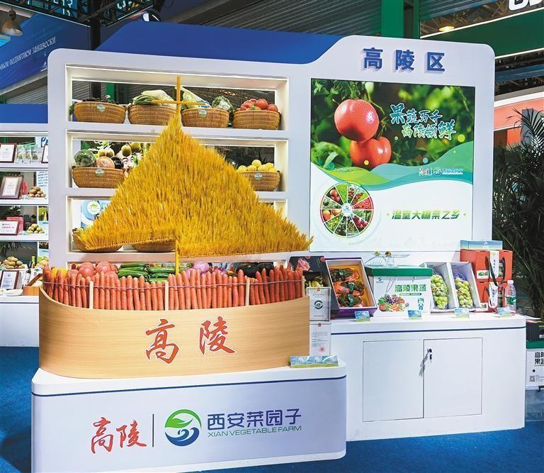西安“菜園子”高陵區(qū)為本屆農(nóng)高會帶來了“帆船”造型的果蔬大菜籃,只見這艘由小麥為帆,“乘坐”著紅黃彩椒、國家地理標志耿鎮(zhèn)胡蘿卜、貝貝南瓜、洋蔥、青翠乳瓜、水果西紅柿的“帆船”仿佛正揚帆起航、乘風破浪,昭示著西安市春夏秋冬四季蔬果供應不斷,市民群眾的菜籃子、米袋子、果盤子豐富多彩,生活蒸蒸日上。