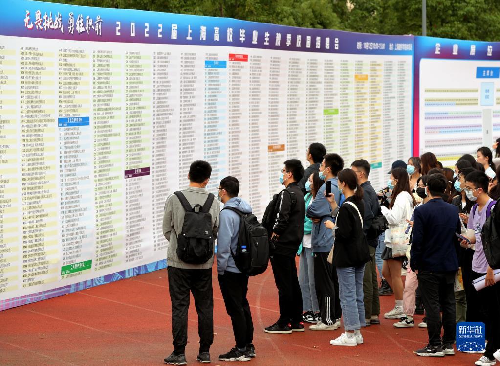 畢業(yè)生在2022屆上海高校畢業(yè)生秋季校園招聘會(huì)上了解崗位信息(2021年10月12日攝)。新華社記者 劉穎 攝
