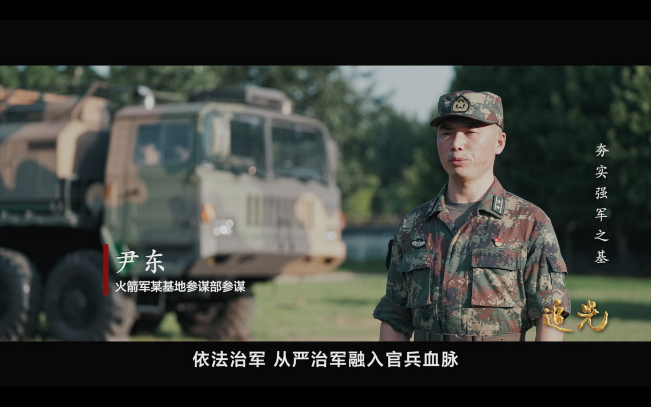 火箭軍某基地參謀尹東說:我們執(zhí)掌的是“殺手锏”武器,一定要讓依法治軍、從嚴(yán)治軍融入官兵血脈,確保每一個(gè)口令、每一個(gè)動(dòng)作都符合戰(zhàn)標(biāo)要求,這樣才能更好地履行使命。