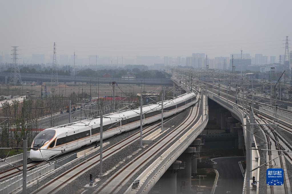 2022年9月22日,合杭高鐵湖州至杭州段首趟列車(chē)從杭州西站駛出。新華社記者 黃宗治 攝