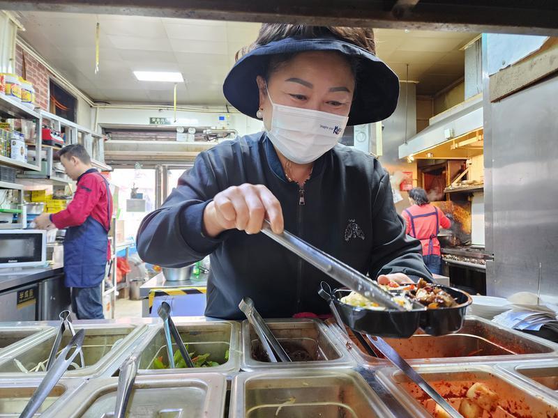 盡管9月23日參加韓國駐西安總領(lǐng)事館舉辦的韓國國慶日招待會很晚才回去,第二天一大早,文美卿仍如往常一樣來到自己在西安綠地中央廣場韓國風(fēng)情街經(jīng)營的明東碳烤韓國料理店。“最近我們剛開展外賣業(yè)務(wù),我來幫著做一些餐食包裝和準(zhǔn)備工作。”文美卿說。