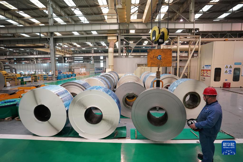 中國寶武山西太鋼不銹鋼精密帶鋼有限公司生產(chǎn)車間一角(10月16日攝)。新華社記者 詹彥 攝