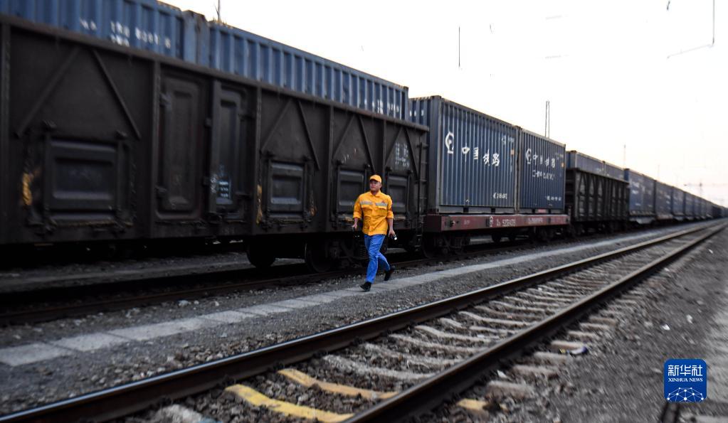 10月16日,在中國鐵路南寧局集團(tuán)有限公司欽州港站,檢車工長林江波走在去接班的路上。新華社記者 張愛林 攝