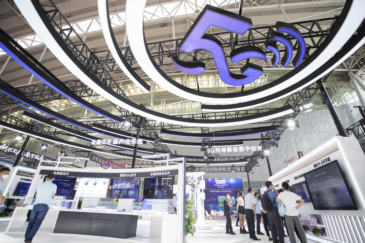 8月10日,2022世界5G大會在黑龍江省哈爾濱市開幕。工作人員在布展。新華社記者 張濤 攝
