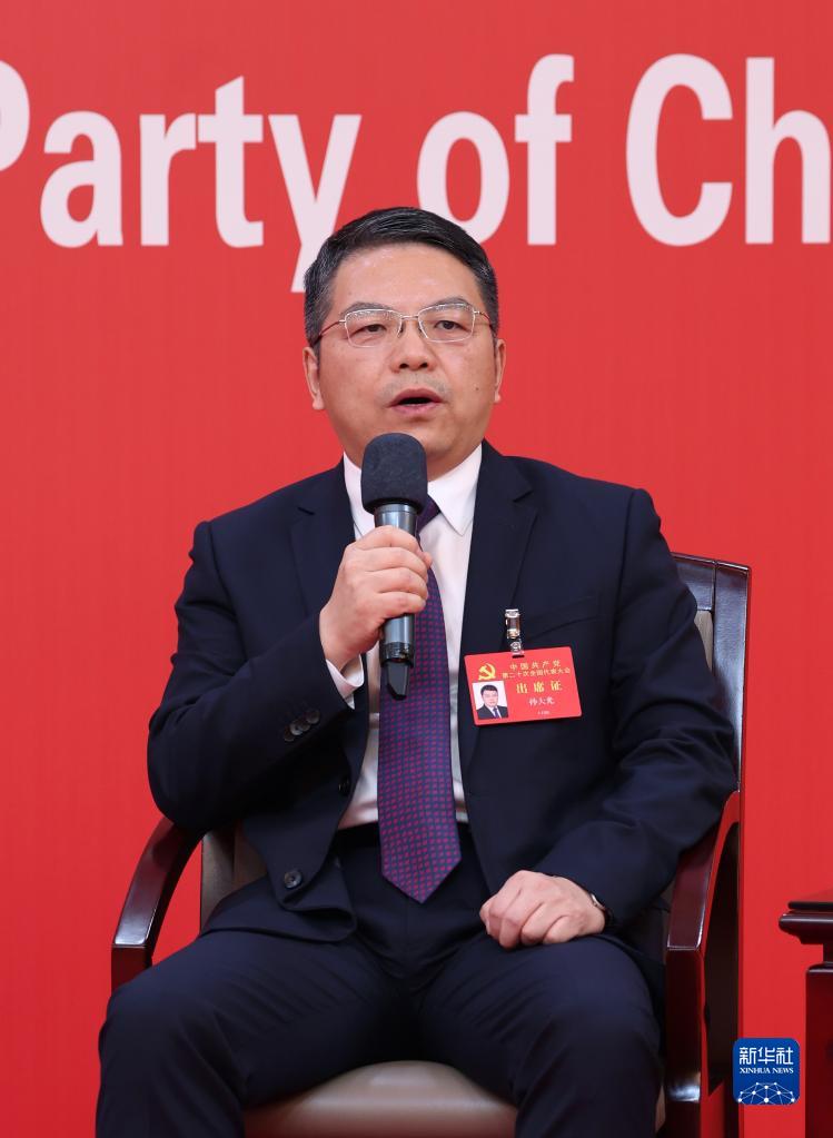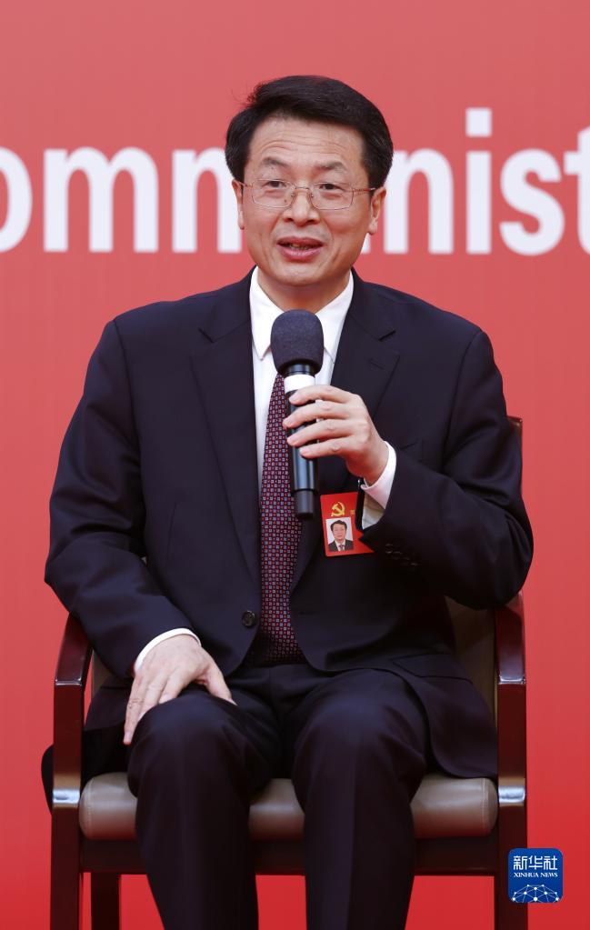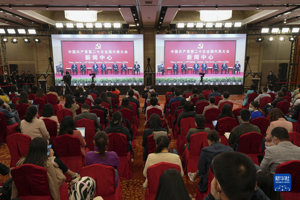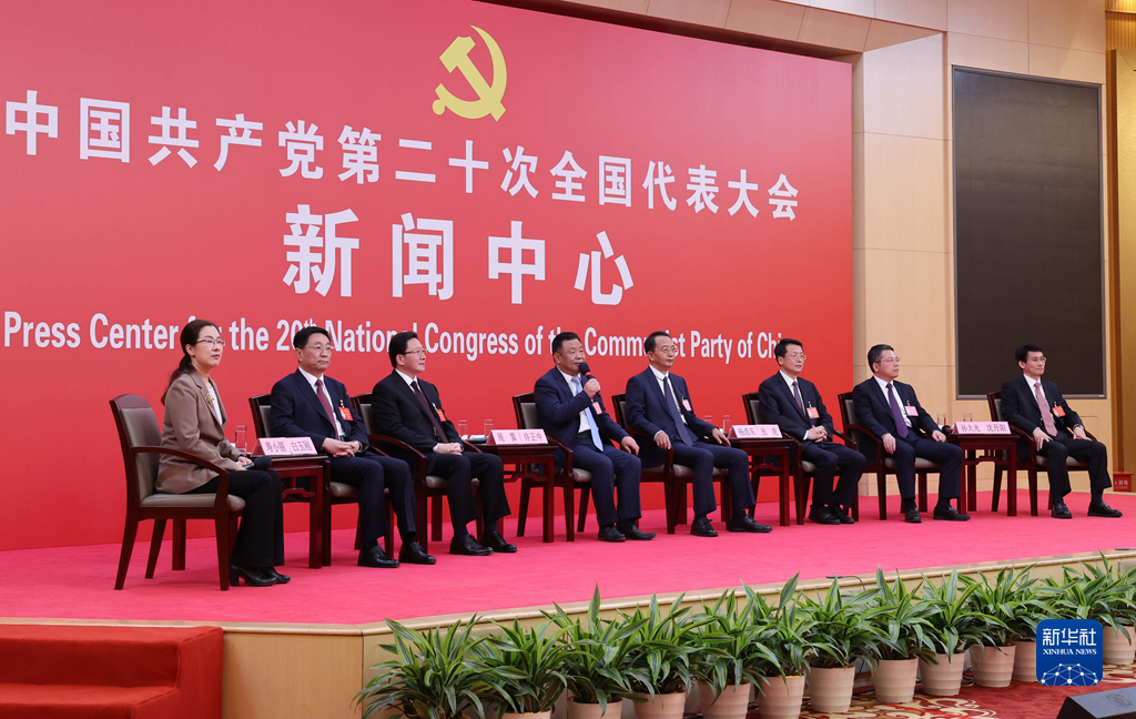 10月19日,中國共產(chǎn)黨第二十次全國代表大會(huì)新聞中心舉行集體采訪。山東、河南、湖北、湖南、廣東、廣西、海南代表團(tuán)新聞發(fā)言人出席,介紹代表團(tuán)學(xué)習(xí)討論二十大報(bào)告情況,并回答記者提問。新華社記者 陳建力 攝