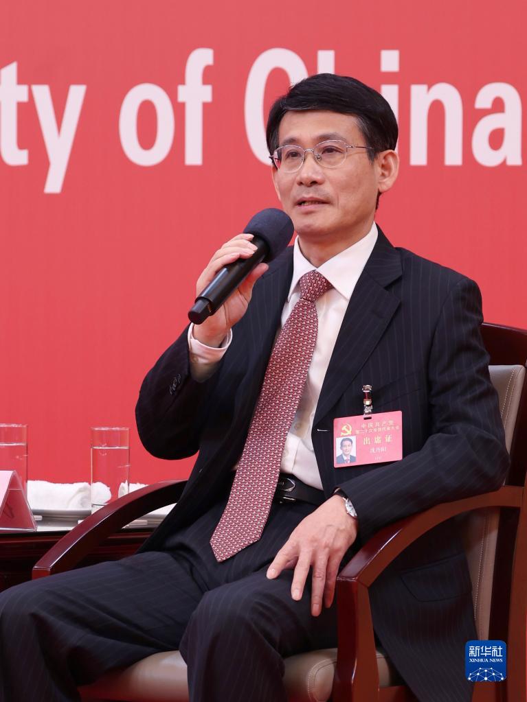 這是海南省委常委、常務(wù)副省長沈丹陽在回答記者提問。新華社記者 張玉薇 攝