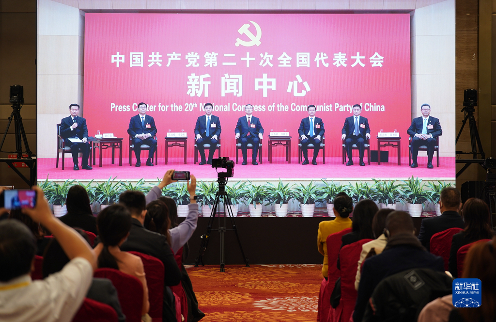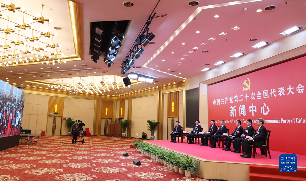 10月20日,中國共產(chǎn)黨第二十次全國代表大會新聞中心舉行集體采訪。青海、寧夏、新疆、中央和國家機關、中央金融系統(tǒng)、中央企業(yè)系統(tǒng)(在京)代表團新聞發(fā)言人出席,介紹代表團學習討論二十大報告情況,并回答記者提問。新華社記者 陳建力 攝