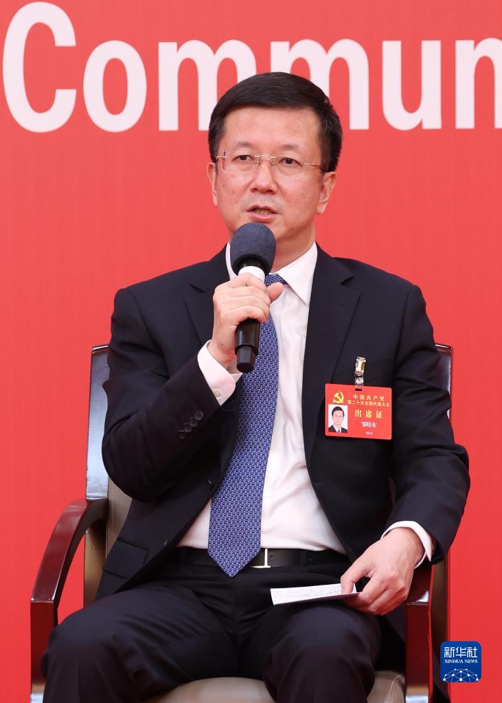 10月20日,中國共產(chǎn)黨第二十次全國代表大會新聞中心舉行集體采訪。青海、寧夏、新疆、中央和國家機關、中央金融系統(tǒng)、中央企業(yè)系統(tǒng)(在京)代表團新聞發(fā)言人出席,介紹代表團學習討論二十大報告情況,并回答記者提問。新華社記者 張玉薇 攝
