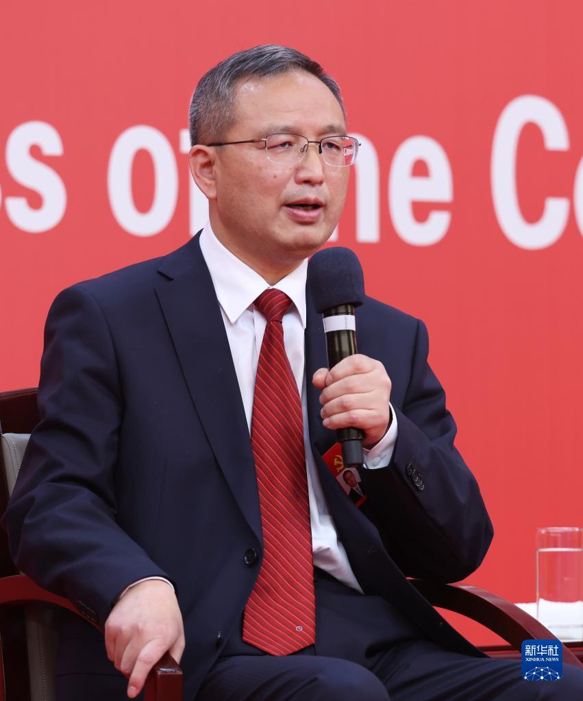 這是中國人民銀行黨委委員、副行長,國家外匯管理局黨組書記、局長潘功勝在回答記者提問。新華社記者 張玉薇 攝