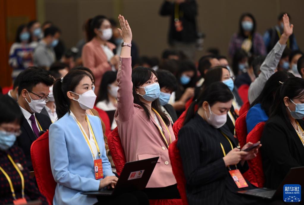這是記者在分會(huì)場(chǎng)舉手提問。新華社記者 金良快 攝