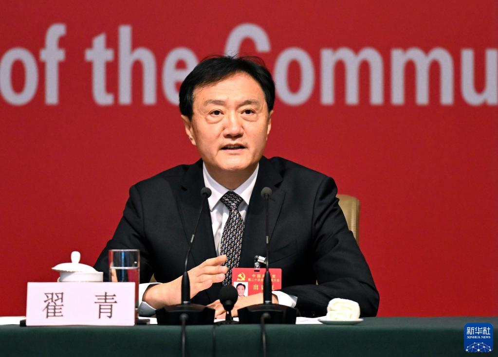 10月21日,中國(guó)共產(chǎn)黨第二十次全國(guó)代表大會(huì)新聞中心舉行記者招待會(huì)。生態(tài)環(huán)境部黨組成員、副部長(zhǎng)翟青圍繞“建設(shè)人與自然和諧共生的美麗中國(guó)”主題與記者交流。新華社記者 宋彥樺 攝