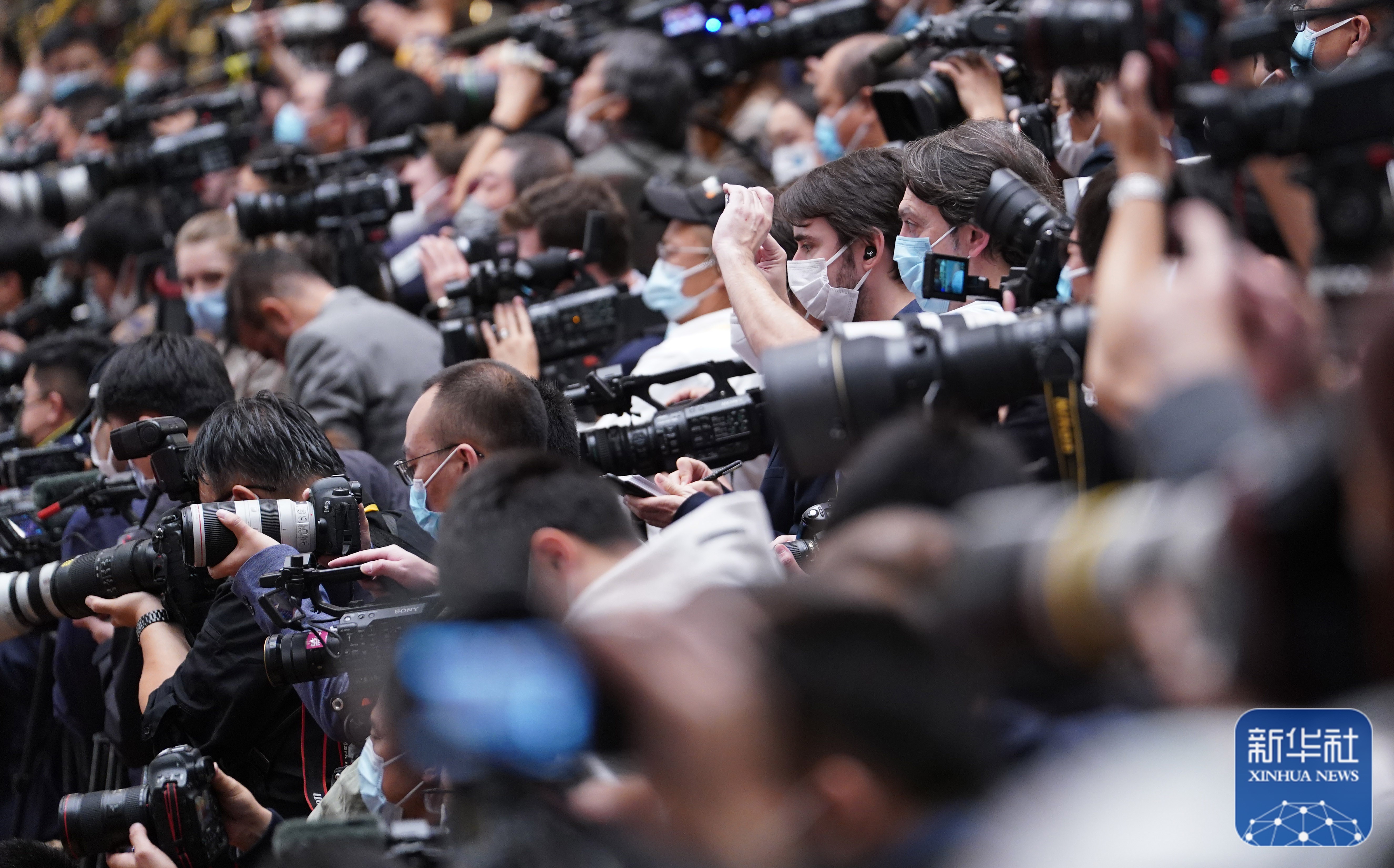 10月22日,中國共產黨第二十次全國代表大會閉幕會在北京人民大會堂舉行。這是記者在采訪拍攝。新華社記者 陳曄華 攝