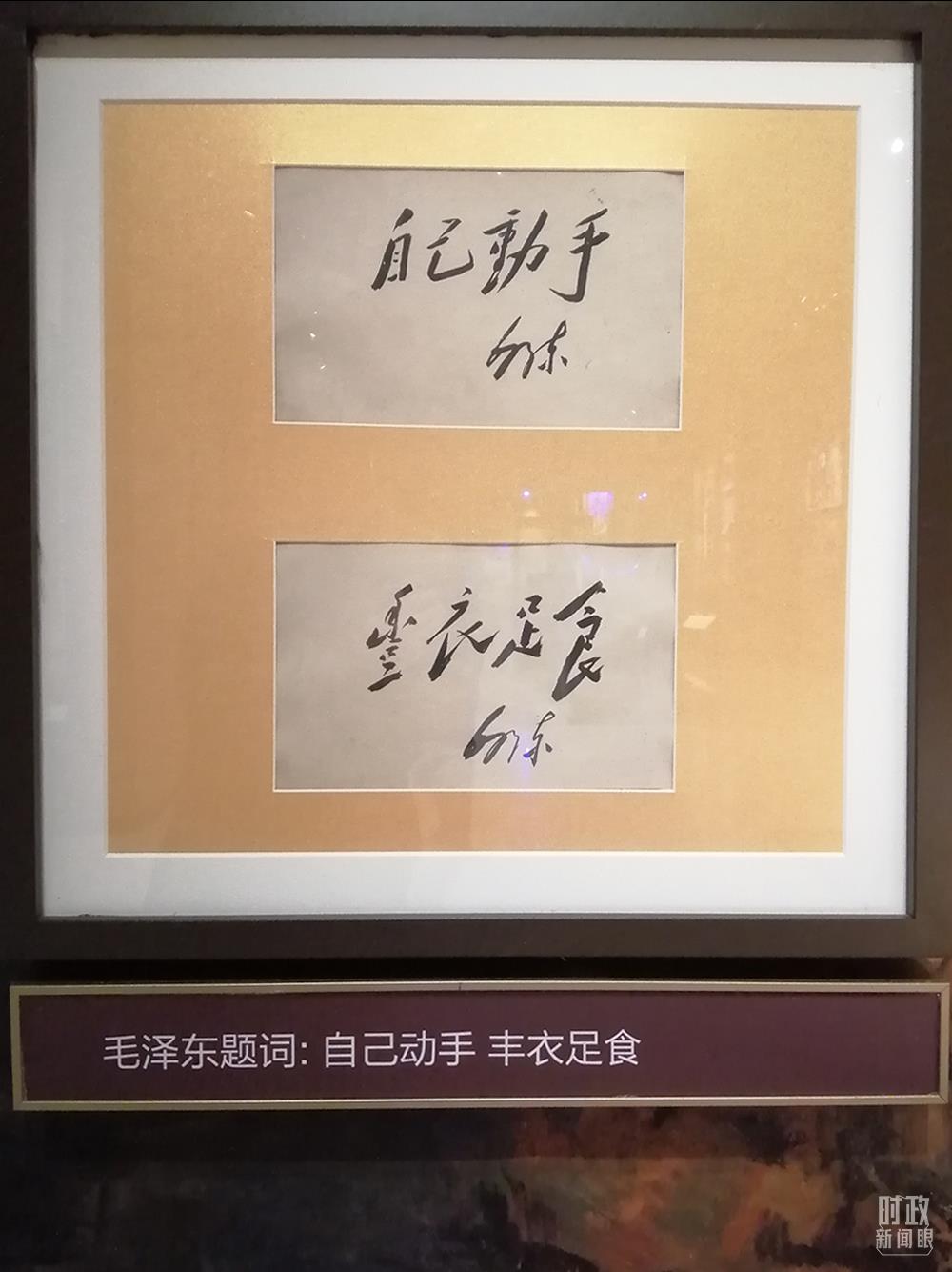 △毛澤東“自己動手 豐衣足食”的題詞。(總臺央視記者許永松拍攝)