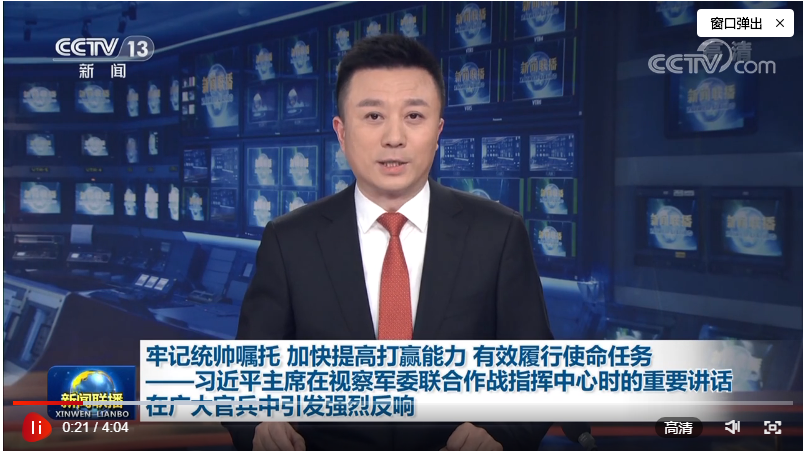 央視網(wǎng)消息(新聞聯(lián)播):中共中央總書(shū)記、國(guó)家主席、中央軍委主席習(xí)近平8日視察軍委聯(lián)合作戰(zhàn)指揮中心時(shí)強(qiáng)調(diào),全軍要全部精力向打仗聚焦,全部工作向打仗用勁,加快提高打贏能力,有效履行新時(shí)代我軍使命任務(wù)。廣大官兵表示,一定牢記習(xí)主席囑托,踔厲奮發(fā)、勇毅前行,奮力實(shí)現(xiàn)建軍一百年奮斗目標(biāo)。
